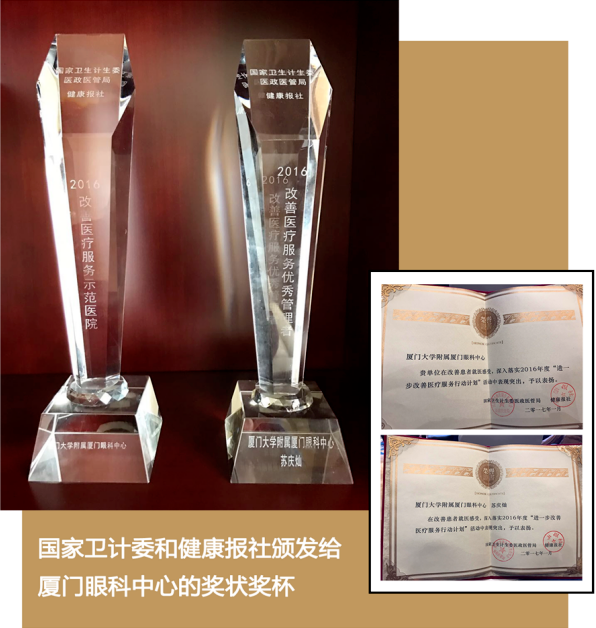 經(jīng)過20多年的跨越發(fā)展,廈門眼科中心已成為醫(yī)療體制改革的成功典范,先后榮獲國家衛(wèi)生部頒布的“2011醫(yī)院改革創(chuàng)新獎(jiǎng)”、“國家臨床重點(diǎn)專科”、“中國醫(yī)院科技影響力排行榜”眼科學(xué)領(lǐng)域前十、學(xué)術(shù)影響力前十。2017年1月,被國家衛(wèi)計(jì)委和健康報(bào)社評(píng)為“2016國家改善醫(yī)療服務(wù)示范醫(yī)院”。中心本著“一切以病人為中心”的原則,并邁出集團(tuán)化發(fā)展步伐,已在北上廣等多個(gè)省市擁有50多家醫(yī)院。