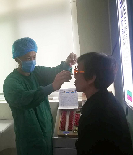 “由于患者雙眼老花,再加上老年人的體質與青少年近視患者不同,術后0.6的視力最符合患者的實際生活需要,患者可從此走出兩幅眼鏡來回換的煩惱。”鄭林副主任解釋到。