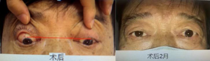潘美華教授手術(shù)中2個月后,林老伯的右眼外觀眼位和功能逐漸恢復(fù)正常,視物也不再重影、模糊了,林老伯一家喜出外望,并對潘教授的光明之恩感激不已。