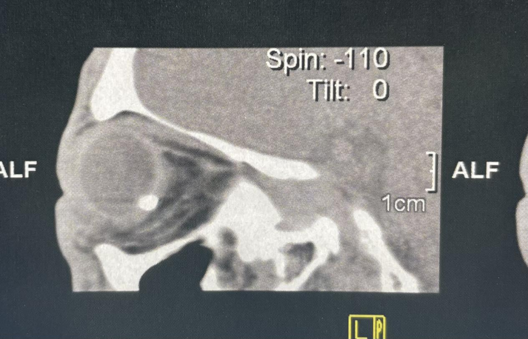 送抵廈門眼科中心時,陳先生左眼已完全喪失視力,還伴有明顯的枕后疼痛癥狀,情況十分危急。當日急診醫(yī)生立即為其展開全面檢查,檢查結(jié)果令人揪心:入眼異物位于靠近眼球后壁的眼窩深處,不僅緊鄰顱腦,還與眼底視神經(jīng)“近在咫尺”。這個特殊位置讓手術(shù)團隊面臨嚴峻挑戰(zhàn),如果在取出過程中出現(xiàn)任何意外,損傷視神經(jīng),陳先生的左眼將面臨永久性失明的嚴重后果。