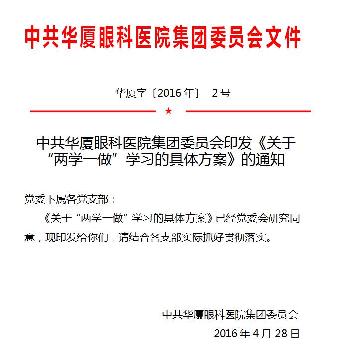 【文章導讀】中共華廈眼科醫院集團委員會(huì )關(guān)于兩學(xué)一做學(xué)習的具體方案 為推進(jìn)全面從嚴治黨,根據黨中央《關(guān)于在全體黨員中開(kāi)展學(xué)黨章黨規、學(xué)系列講話(huà),做合格黨員學(xué)習教育方案》和思明區組