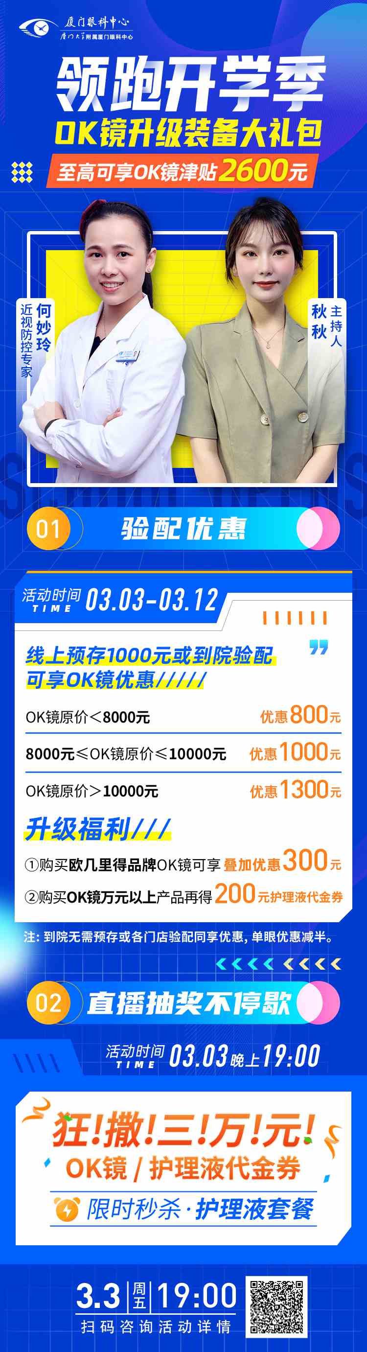 ?、诨顒?dòng)期間(3.3-3.12)到院驗配無(wú)需預存,同享優(yōu)惠;③預存顧客驗配截止日期:3月31日。