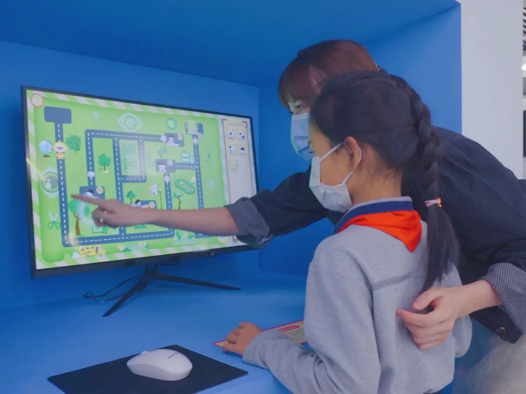 家長(cháng)和孩子們可以利用移動(dòng)觸摸屏、多媒體互動(dòng)展示和VR游戲等方式,體驗動(dòng)物的眼睛 (VR)、視野挑戰、電子萬(wàn)花筒、盲道體驗、光影通道、視覺(jué)藝術(shù)館、光學(xué)小知識、愛(ài)眼知識搶答挑戰等各種互動(dòng)游戲,更好地了解眼睛的構造、近視和遠視的矯正方法、近視后眼底的病變、正確的坐姿、合理膳食的重要性以及近視的防控方法等知識,讓孩子們更好地了解和保護自己的眼睛健康。